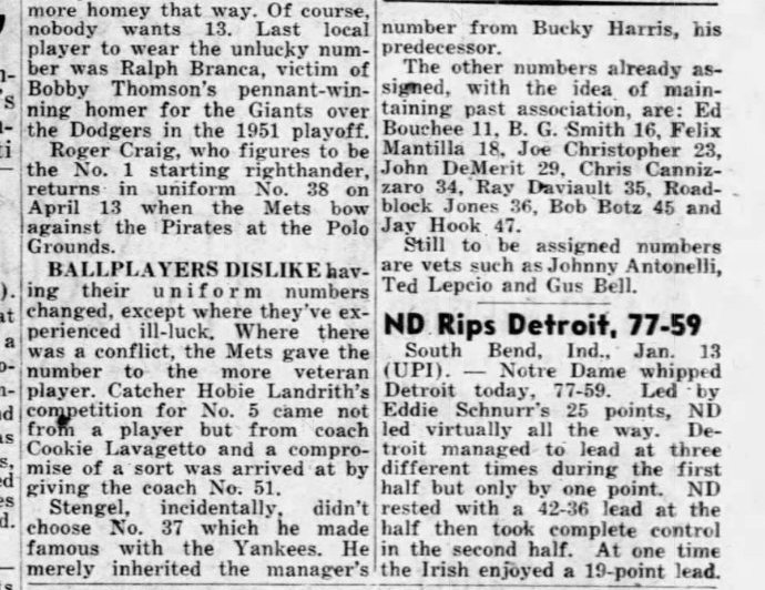 Some of the activity relates to new reliever Trevor May who evidently will retain the same No. 65 he wore in his previous job with the Twins. That means a switch for newly re-signed bullpenner Robert Gsellman, who rosters now list in 44. I’ve railed against offensive-line numbers for major leaguers for some time now but there was something appropriate to the 65 hanging beneath the broad shoulders of Gsellman, as the digits mimic the unique spelling on the name above them: 65ELLMAN, right? It’s a gshame.